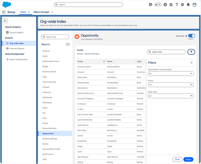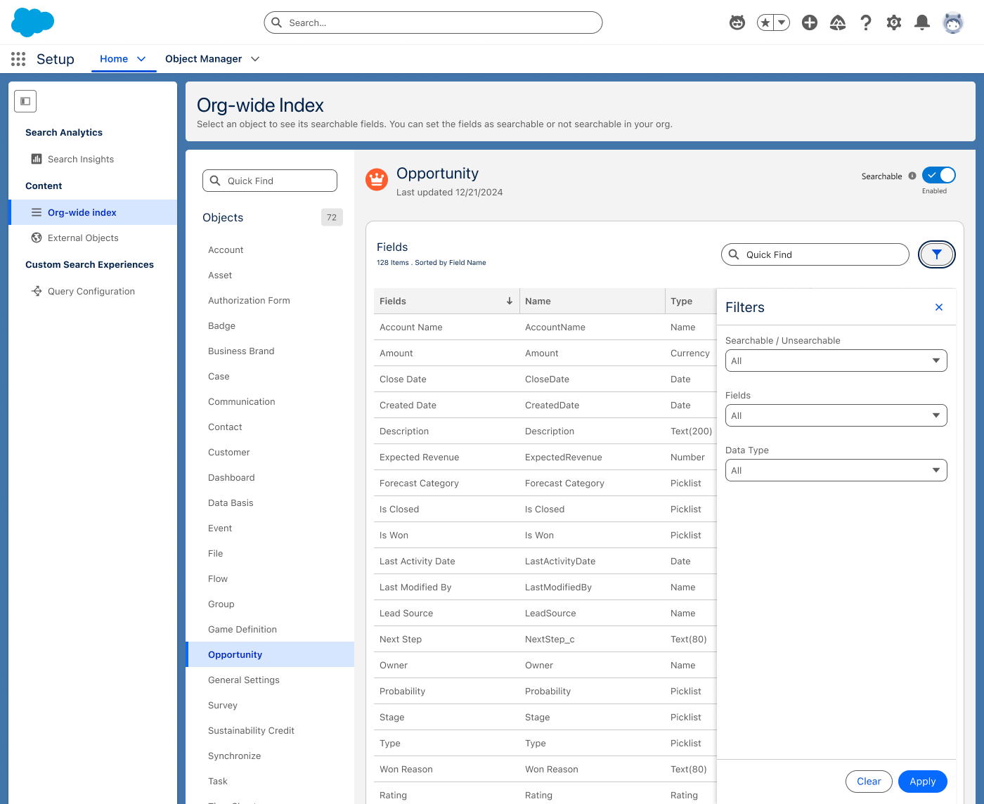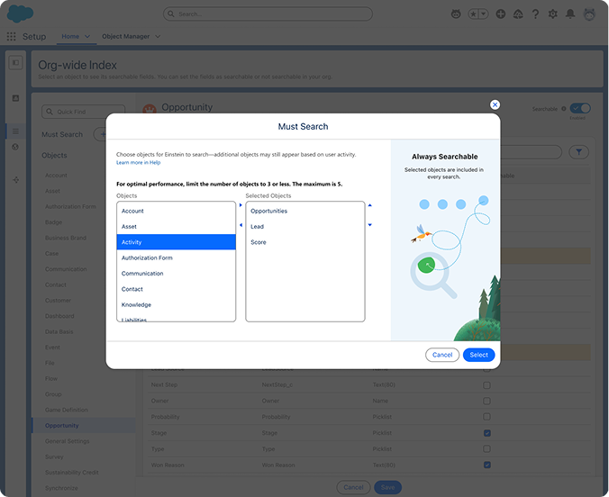 They needed profile-based, channel-specific ways to manage which objects and fields were indexed.